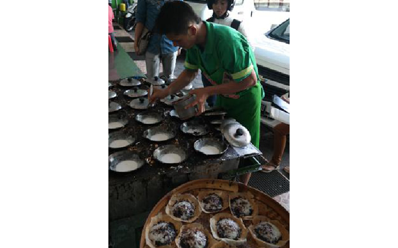 1/ Kue Jongkong (Bangka Belitung): Menemukan kue ini sangatlah mudah, mulai dari pagi hari dari pedagang berkeliling yang berjalan kaki, mengendarakan sepeda, sampai toko-toko kue selalu menjajakan kue ini sebagai sarapan. Kue ini dibuat dari tepung beras yang dimasak dengan santan, lalu dicetak berlapis dengan warna putih dan hijau (daun suji).
